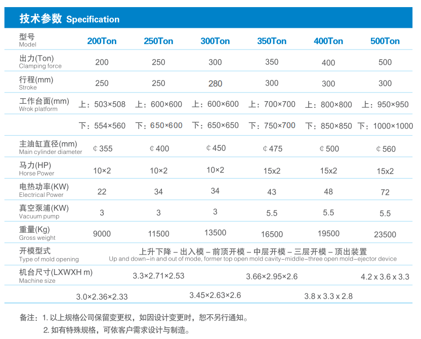 · 4RT結(jié)構(gòu)特點在于超越一般傳統(tǒng)前頂式掀模,可用于三層或四層取成品之特殊模具,此功能具有掀模及中層模具個別頂出,底層模具入機,中層模具下降,頂針上升拍成品之特殊功能,可依靠操作者需要做調(diào)整;